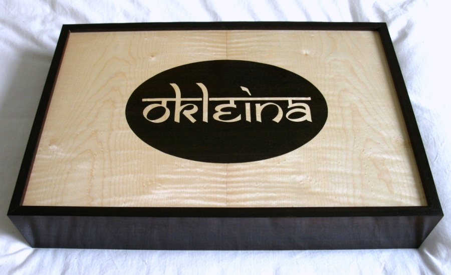 Essences utilisées: padouk, érable, érable ondé, noyer américain, poirier teinté.