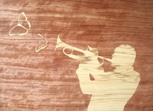 Marqueteries réalisées d’après le pochoir « Harmonie » de Nabsky.