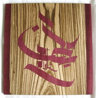 Marqueteries réalisées d’après la calligraphie « Kaalam » de Julien Breton.